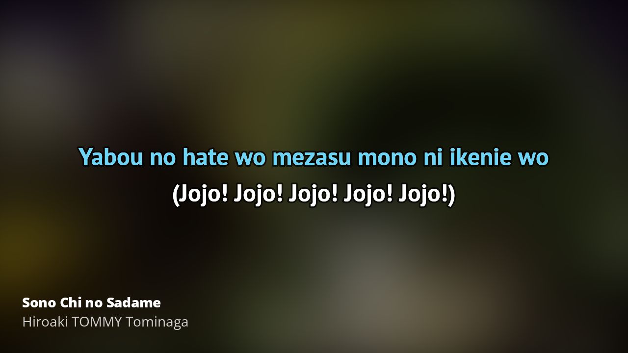 Sono Chi no Sadame (JoJo's Bizarre Adventure Opening 1 TV Version) – Hiroaki TOMMY Tominaga (Tekst)